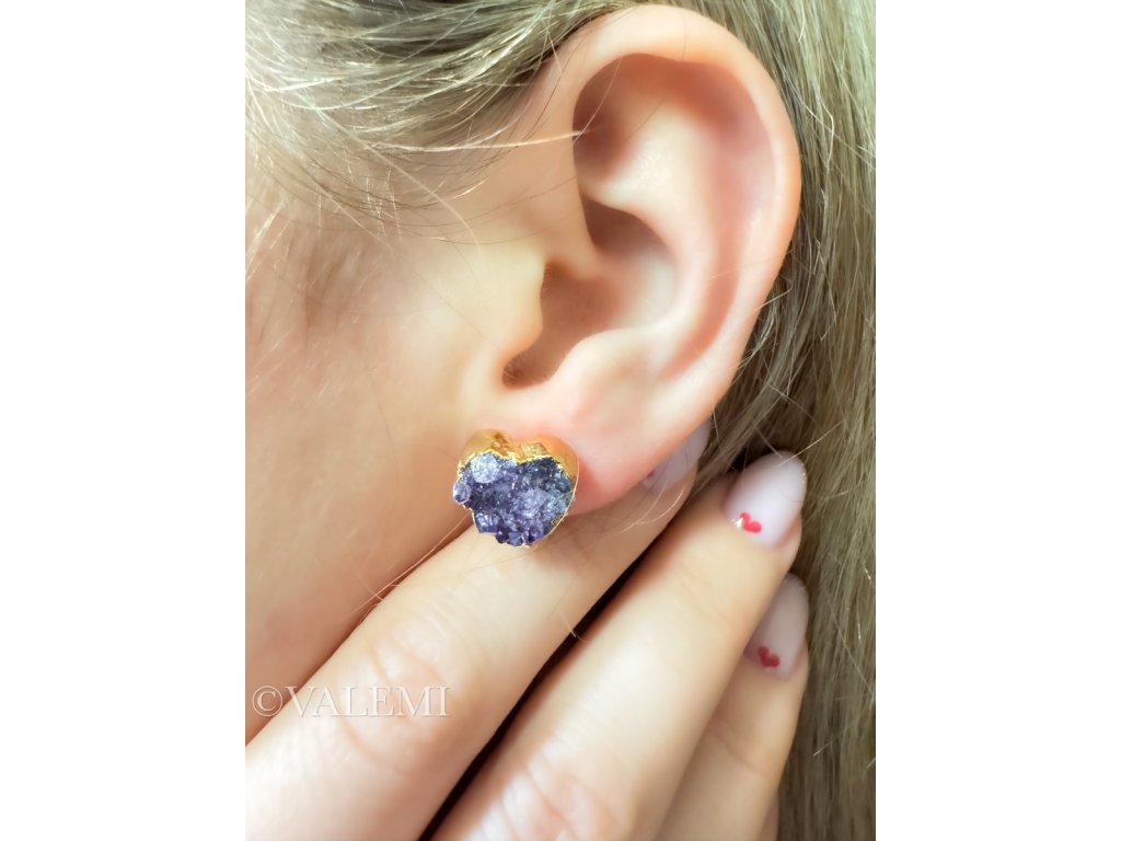 Náušnice ametyst druzy srdce pozlacené tmavší