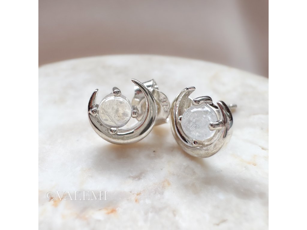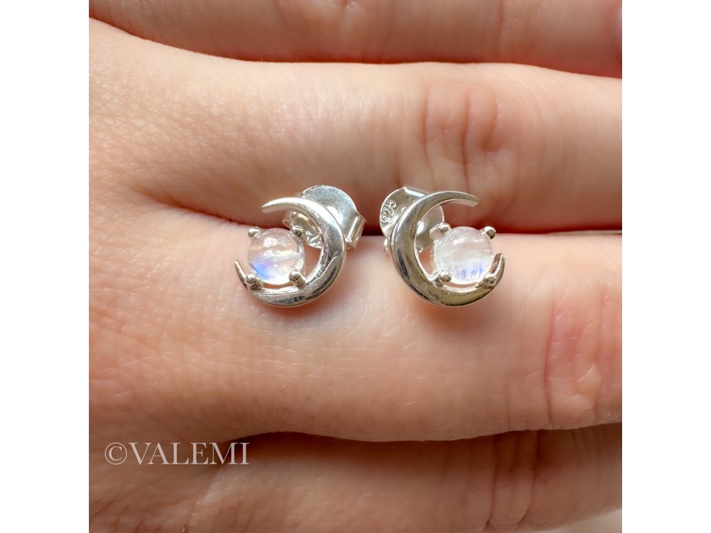 Náušnice Měsíc s duhovým měsíčním kamenem – stříbro Ag 925