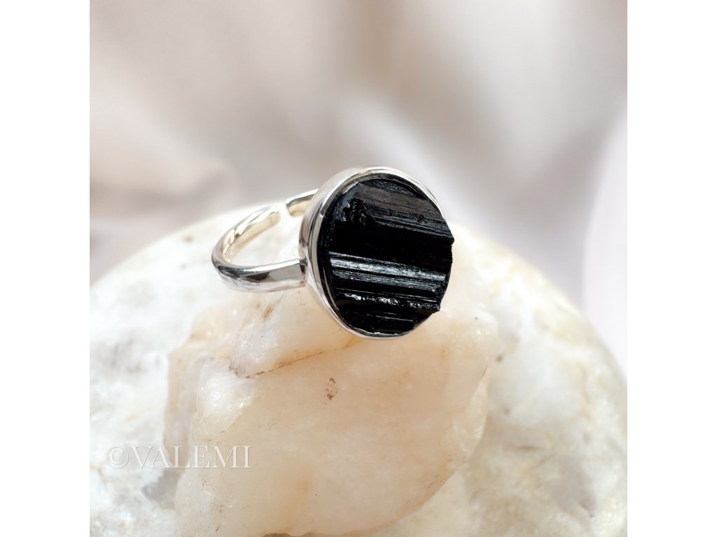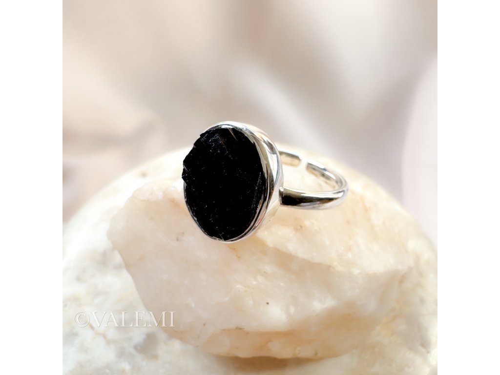 Nastavitelný prsten s černým onyxem, vyrobený ze stříbra, který se jemně přizpůsobí tobě i tvé jedinečné energii.