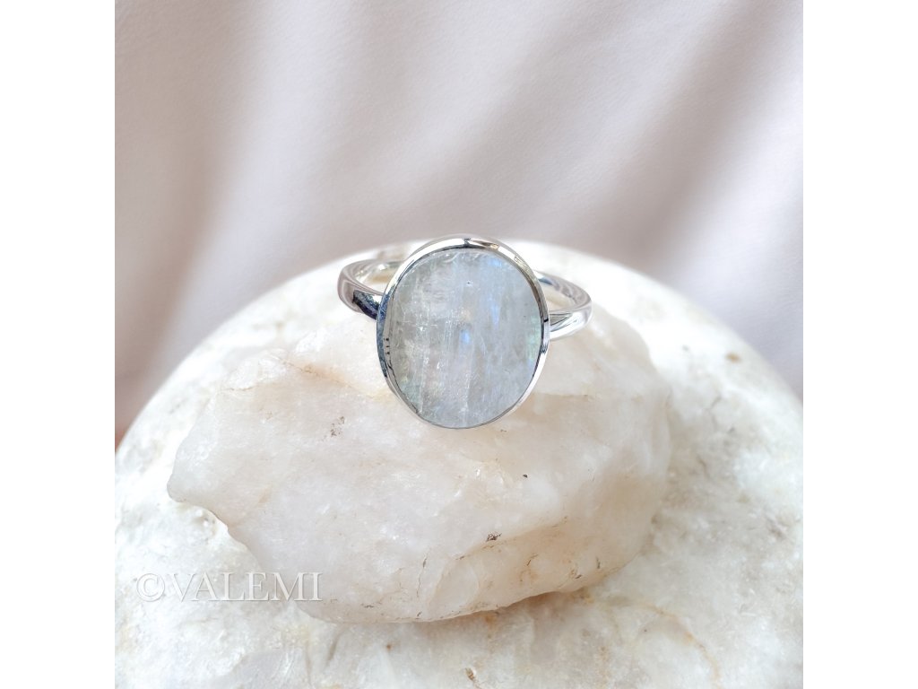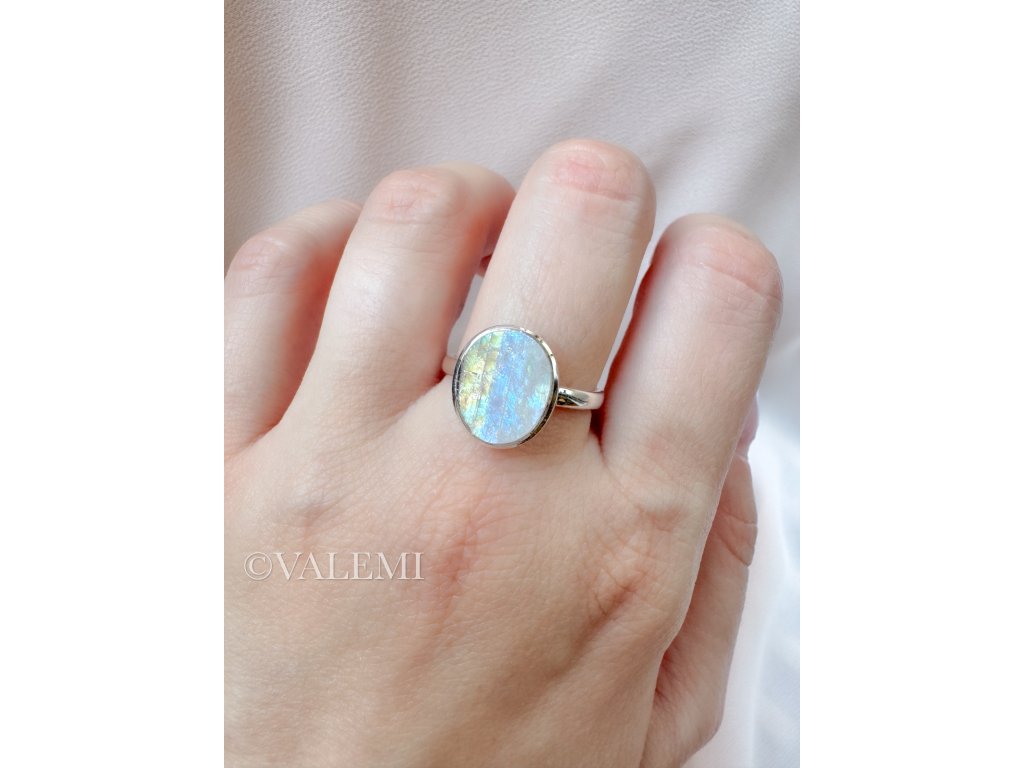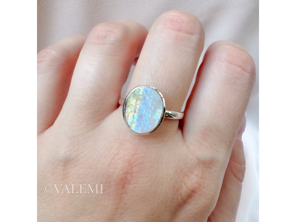 Nastavitelný prsten s duhovým měsíčním kamenem, vyrobený ze stříbra, který se dokonale přizpůsobí tobě i tvé energii.