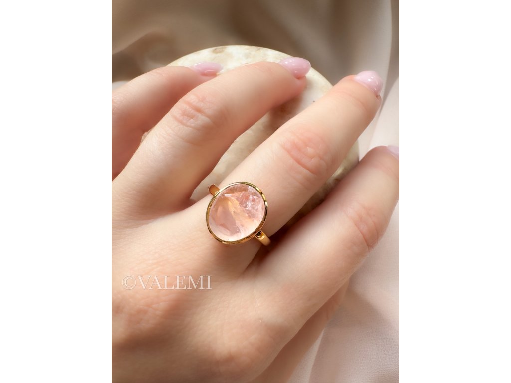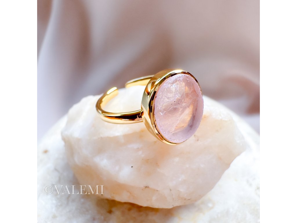 Nastavitelný prsten s růženínem, vyrobený ze stříbra pozlaceného 18k zlatem, který se dokonale přizpůsobí tobě i tvé energii.