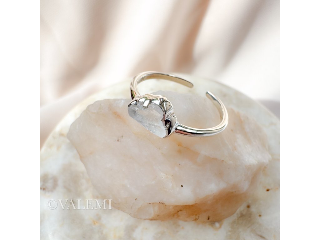Nastavitelný prsten · Stříbro Ag 925 · Surový duhový měsíční kámen · Minimalistický design