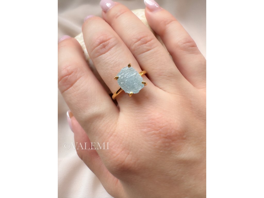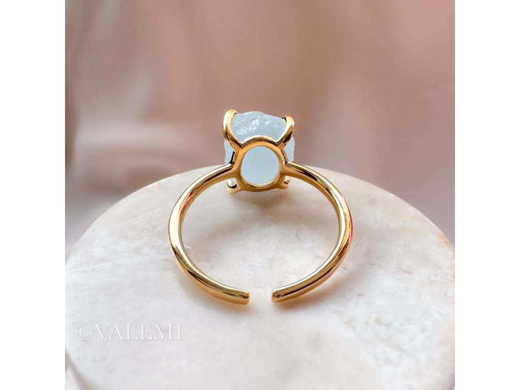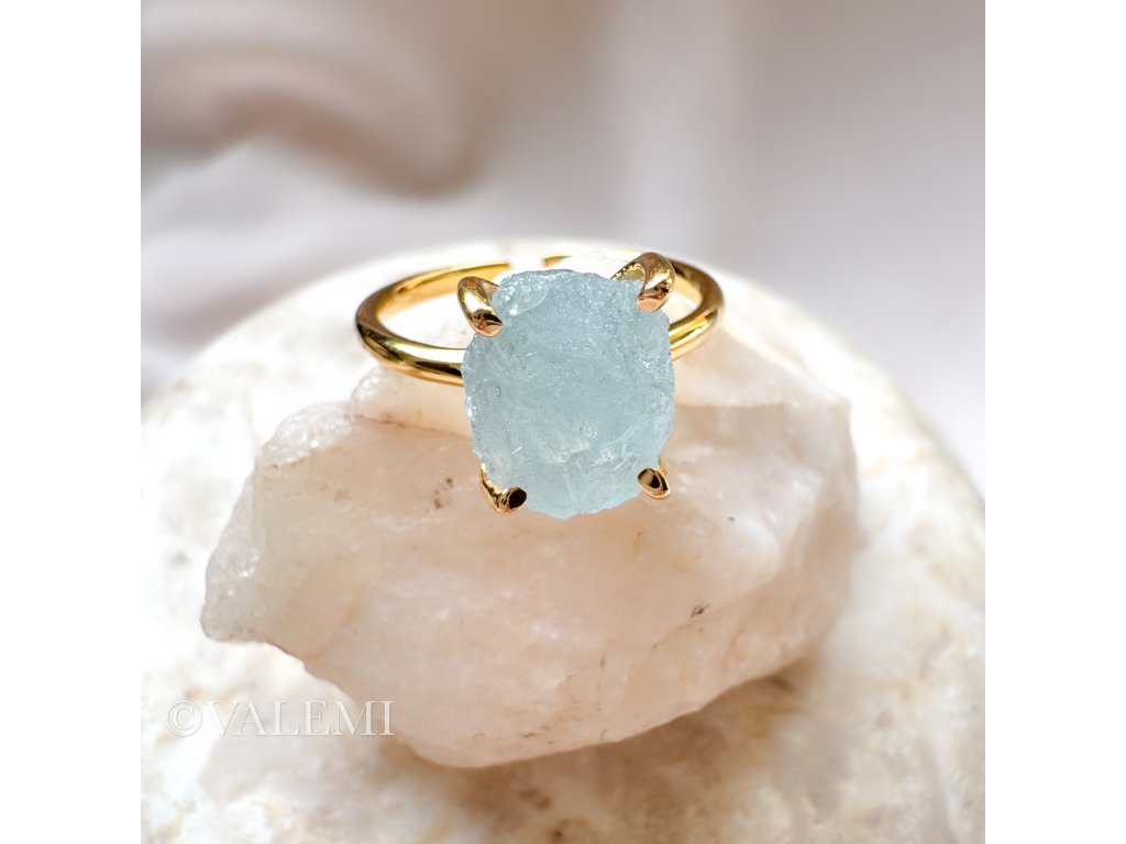 Prsten s akvamarínem – pozlacené stříbro 925, nastavitelný. Kámen odvahy.