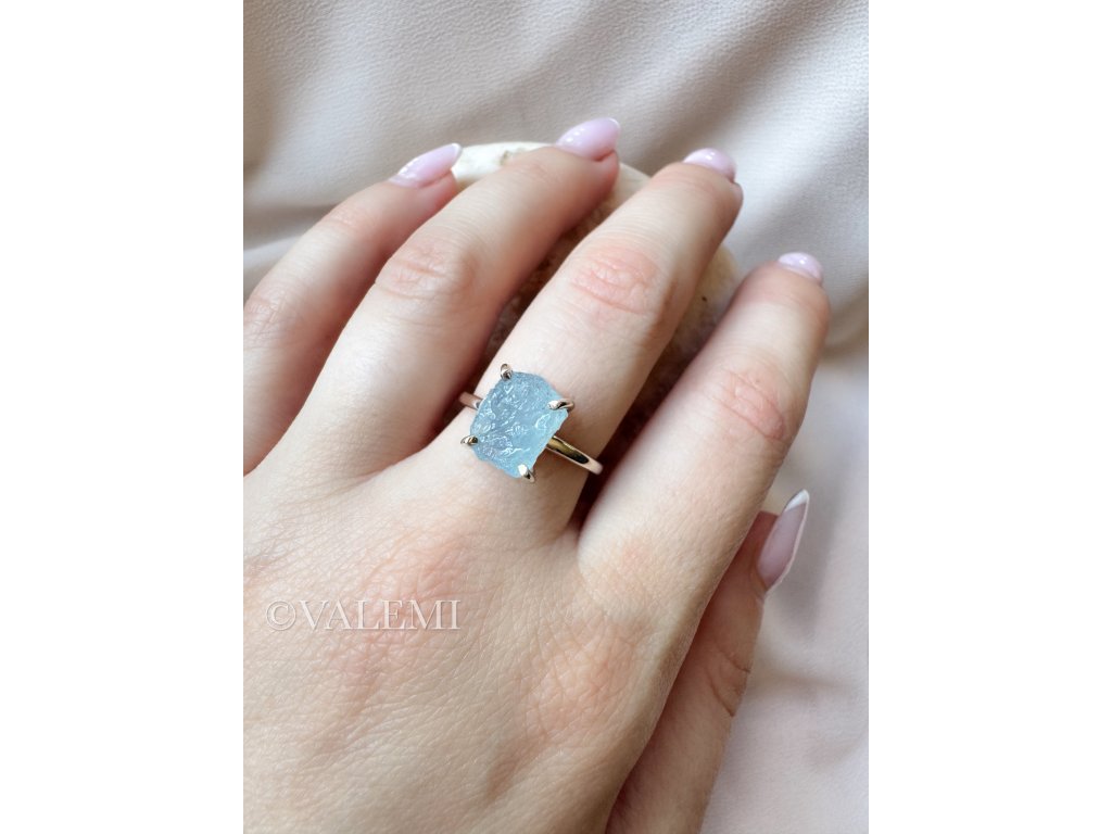 Prsten s akvamarínem – pozlacené stříbro 925, nastavitelný. Kámen odvahy.