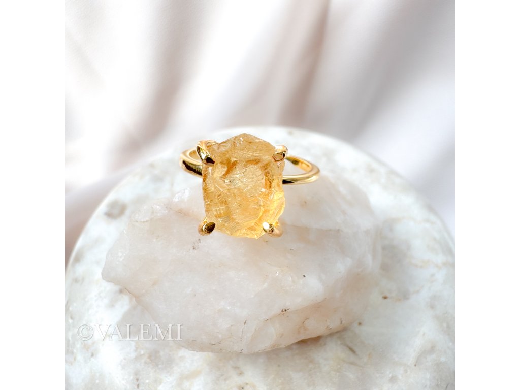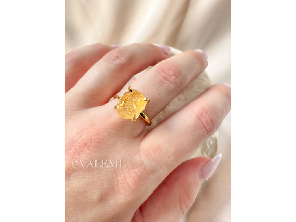 Prsten s citrínem – pozlacené stříbro 925, nastavitelný. Kámen pozitivity.
