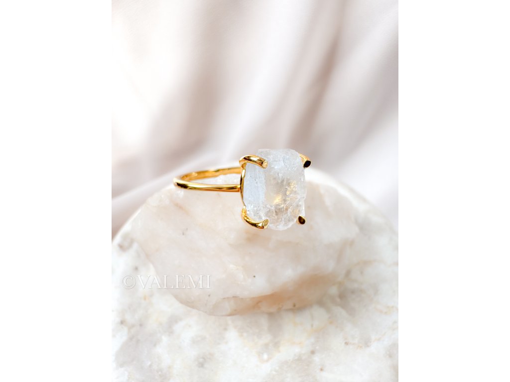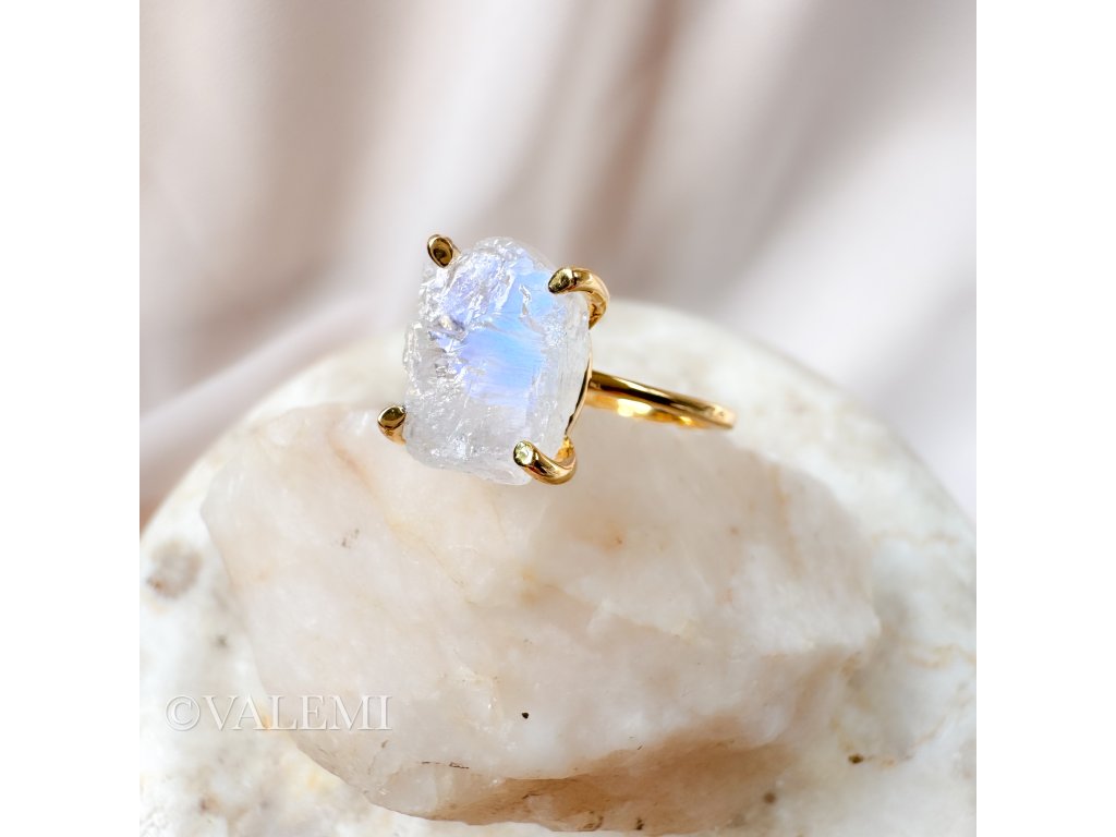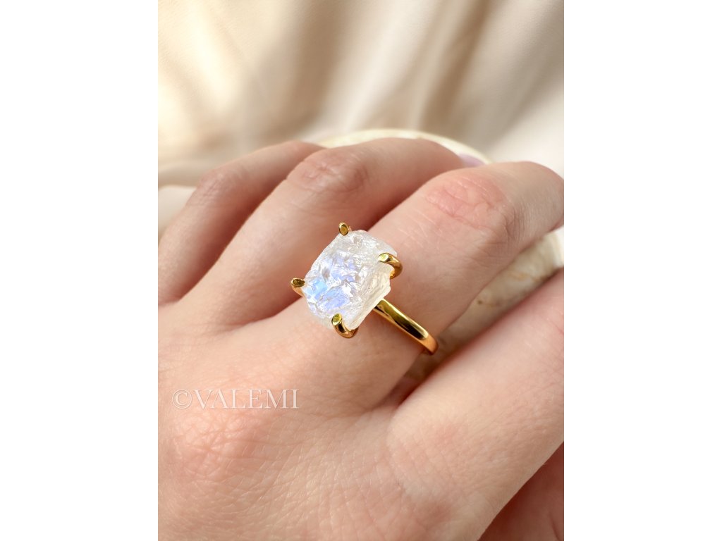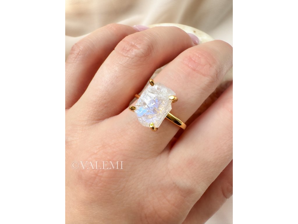 Prsten s duhovým měsíčním kamenem – pozlacené stříbro 925, nastavitelný. Kámen intuice.