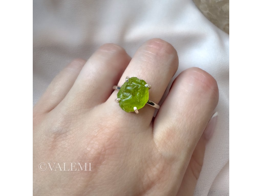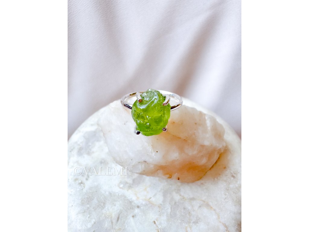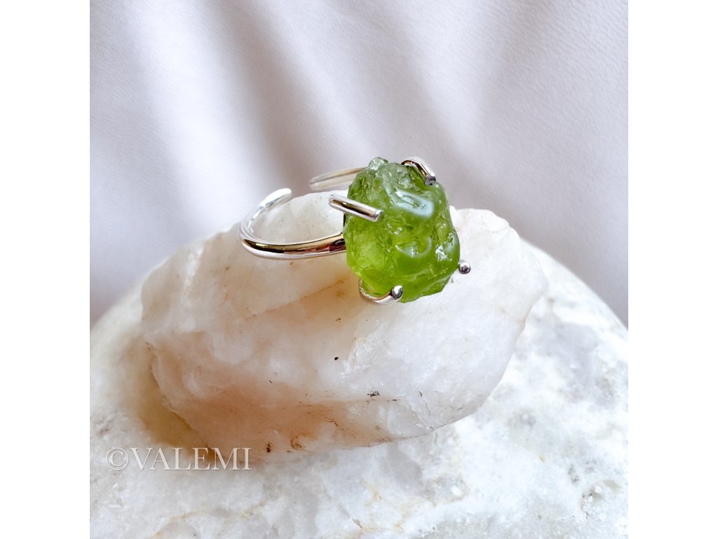 Prsten s peridotem – stříbro 925, nastavitelný. Kámen očisty.