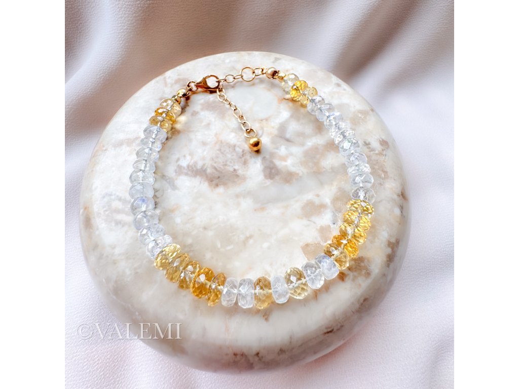 The Golden Moon - náramek s citrínem a duhovým měsíčním kamenem